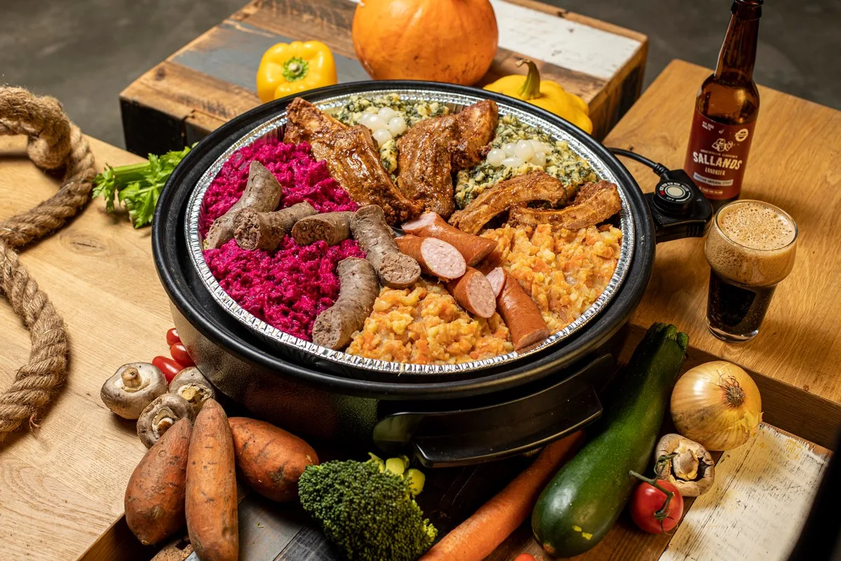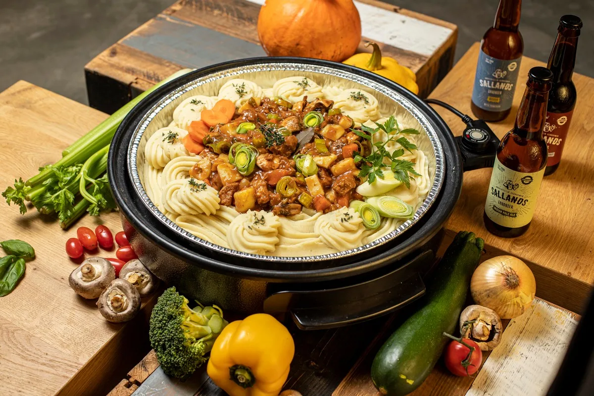 Stoofpot van draadjesvlees, aardappelen en groente, gestoofd in Sallands bier