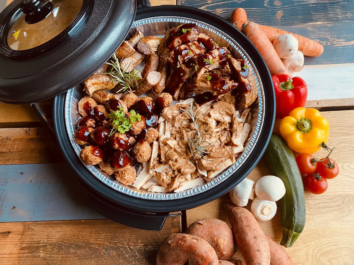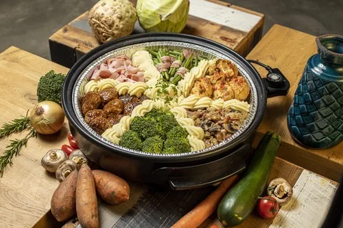 Geen zin om te koken? Dan doen wij dat graag voor u! Ontdek de Smulpan hapjes- of maaltijdpan van De Maathoeve. U kunt kiezen uit diverse gerechten, variërend van een heerlijke selectie aan stampotten tot risotto. Heeft u een feestje en wilt u wat lekkers op tafel zetten, ontdek dan de Smulpannen met hapjes. De hapjespan is gevuld met ca.50 hapjes en geschikt als maaltijdhapjes voor 4 pers. en als borrelhapjes voor 6 pers. De maaltijdpannen zijn voldoende voor 4 personen. De gerechten worden bereid met streekproducten en thuis makkelijk te verwarmen: De stekker in het stopcontact en smullen maar….