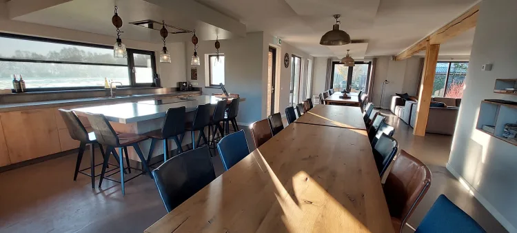 Onze groepsaccommodatie is met 15 luxe slaapkamers geschikt voor maar liefst 46 personen. Aan werkelijk alles is gedacht in de accommodatie. Zo zijn de slaapkamers allemaal voorzien van eigen badkamers en luxe bedden. De sfeervolle living biedt alle ruimte voor een gezellig samenzijn met de familie, of neem plaats bij de buitenhaard om onder het genot van een hapje en een drankje even bij te kletsen.